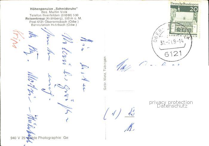 72281664 alte Postkarte Obersensbach Hoehenpension Schmidsruhe postalisch gelaufen Erhaltung siehe scans KatCode: 11110006437015