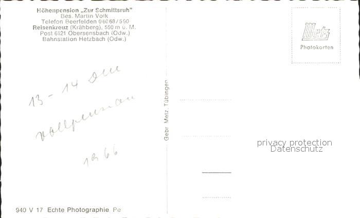 71903174 Obersensbach Hoehenpension Zur Schmittsruh Reisenkreuz Kraehberg postalisch nicht gelaufen KatCode: 11110006437015
