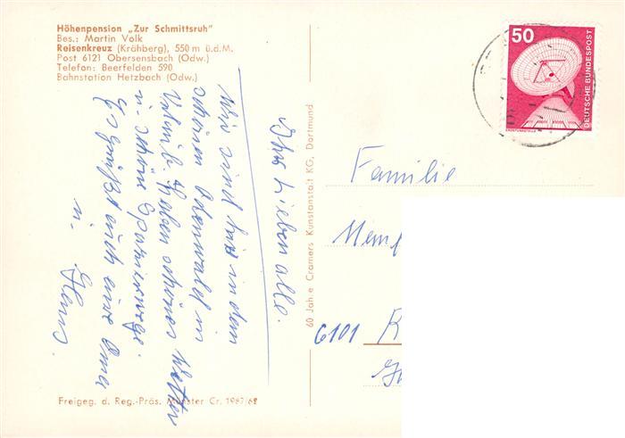73879428 alte Postkarte Obersensbach Sensbachtal Hoehenpension zur Schmittsruh postalisch gelaufen Fliegeraufnahme Erhaltung siehe scans [FriedD77] KatCode: 11110006437015