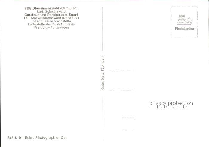 41768120 Obersimonswald Gasthaus Pension zum Engel postalisch nicht gelaufen Erhaltung siehe scans KatCode: 11110008316042