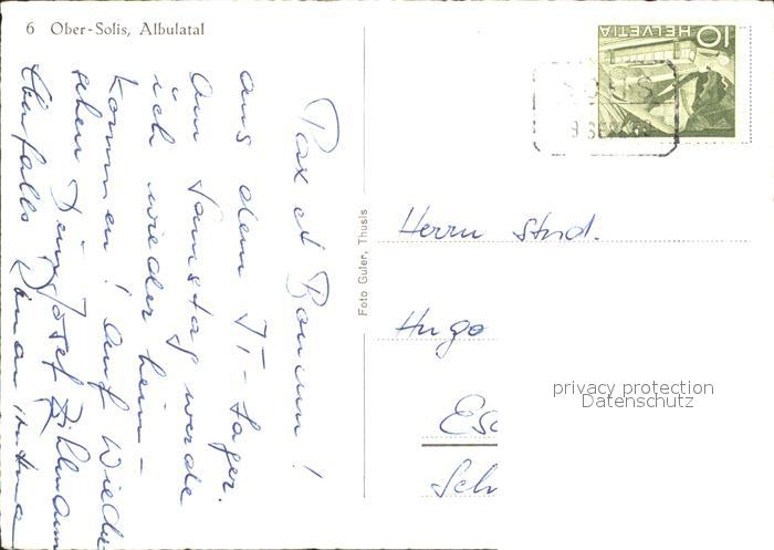 11645305 alte Postkarte Obersolis Albulatal postalisch gelaufen Erhaltung siehe scans KatCode: 11470360555266