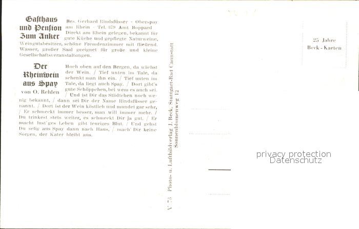 31728649 Oberspay Gasthof Anker postalisch nicht gelaufen KatCode: 11110007137223