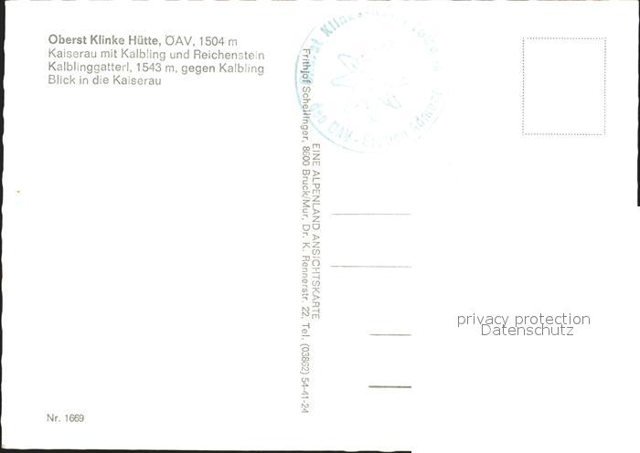 72289291 Oberst-Klinke-Huette Kaiserau Kalbling Reichenstein Kalblinggatterl postalisch nicht gelaufen Erhaltung siehe scans KatCode: 11390222061201