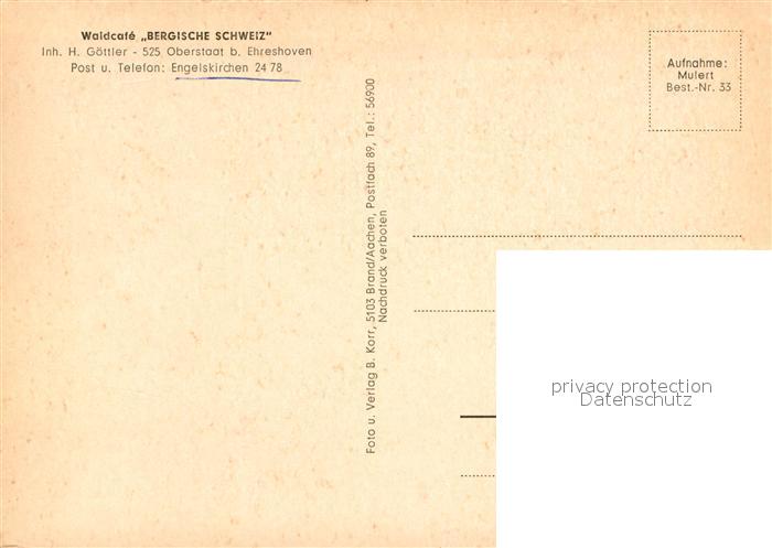72940042 Oberstaat Waldcafe Bergische Schweiz Terrasse postalisch nicht gelaufen Erhaltung siehe scans [FriedD77] KatCode: 11110005374008