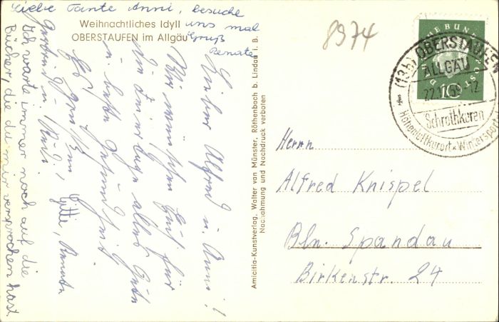 30726923 alte Postkarte Oberstaufen postalisch gelaufen KatCode: 11110009780132