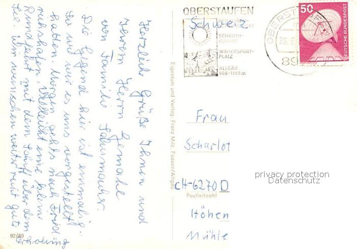 73270356 alte Postkarte Oberstaufen Freibad postalisch gelaufen Erhaltung siehe scans [PaolaD17] KatCode: 11110009780132