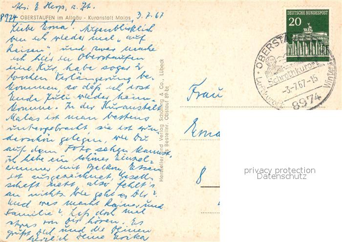 73249146 alte Postkarte Oberstaufen Kuranstalt Malas Landschaftspanorama Allgaeuer Alpen postalisch gelaufen Erhaltung siehe scans [FriedD77] KatCode: 11110009780132