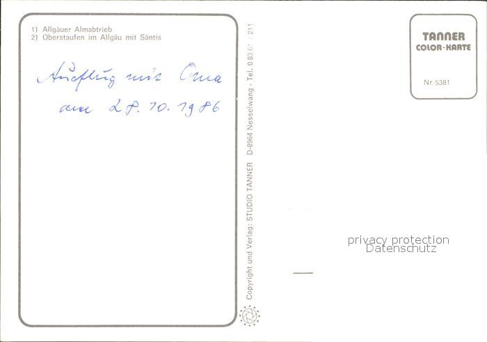 72377324 Oberstaufen Oberallgaeu Bayern Allgaeuer Almabtrieb Ortsansicht mit Kirche Blick zum Saentis postalisch nicht gelaufen Erhaltung siehe scans KatCode: 11110009780132