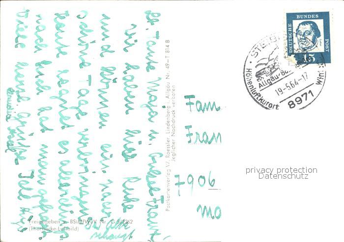 72461853 alte Postkarte Oberstaufen Oberallgaeu Bayern Allgaeuer Alpen Fliegeraufnahme postalisch gelaufen Erhaltung siehe scans KatCode: 11110009780132
