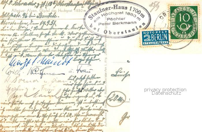 73097021 alte Postkarte Oberstaufen Oberallgaeu Bayern Allgaeuer Alpen Gipfel Hochgrat postalisch gelaufen Erhaltung siehe scans [KathaD81] KatCode: 11110009780132