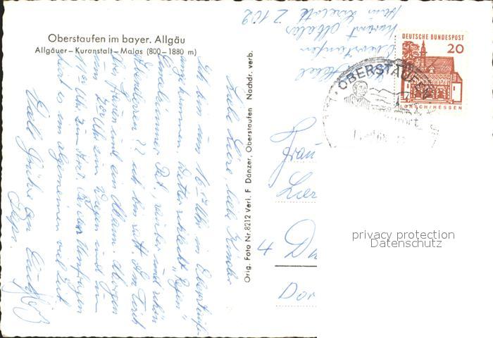 72200973 alte Postkarte Oberstaufen Oberallgaeu Bayern Allgaeuer Kuranstalt Malas postalisch gelaufen Erhaltung siehe scans KatCode: 11110009780132