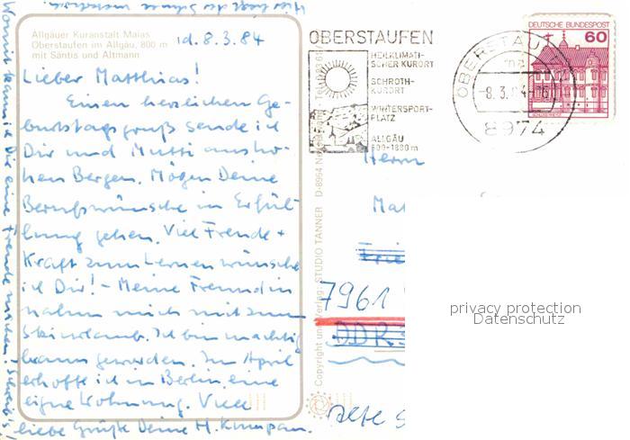 72616408 alte Postkarte Oberstaufen Oberallgaeu Bayern Allgaeuer Kuranstalt Malas Winterpanorama mit Saentis und Altmann Appenzeller Alpen postalisch gelaufen Erhaltung siehe scans [FriedD77] KatCode: 11110009780132