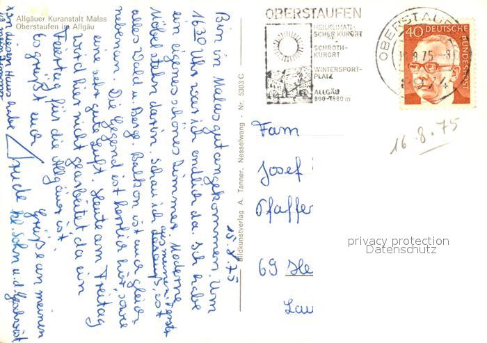 73073574 alte Postkarte Oberstaufen Oberallgaeu Bayern Allgaeuer Kuranstalt Malas postalisch gelaufen Erhaltung siehe scans [WerneD78] KatCode: 11110009780132