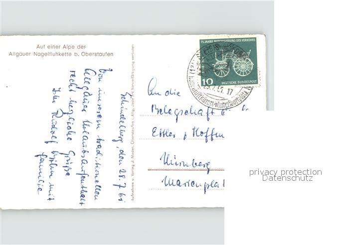 71939637 alte Postkarte Oberstaufen Oberallgaeu Bayern Alpe auf der Allgaeuer Nagelfluhkette postalisch gelaufen Erhaltung siehe scans KatCode: 11110009780132