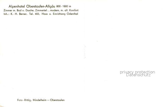 73645675 Oberstaufen Oberallgaeu Bayern Alpenhotel Restaurant postalisch nicht gelaufen Erhaltung siehe scans [FriedD77] Frie Katcode 11110009780132