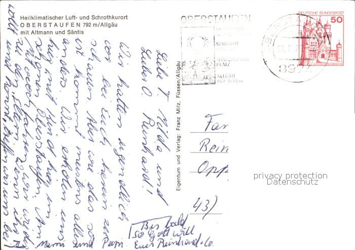 72325789 alte Postkarte Oberstaufen Oberallgaeu Bayern Altmann Saentis postalisch gelaufen Erhaltung siehe scans KatCode: 11110009780132