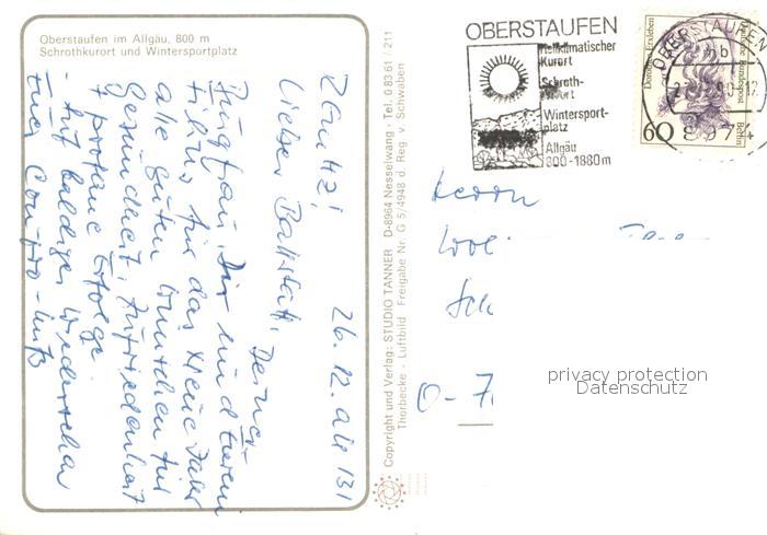 73701614 Oberstaufen Oberallgaeu Bayern Fliegeraufnahme postalisch gelaufen Erhaltung siehe scans [WerneD78] alte Postkarte Wern Katcode 11110009780132