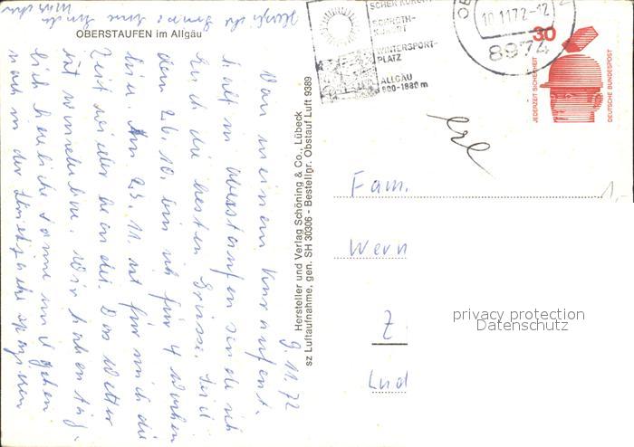 72032016 alte Postkarte Oberstaufen Oberallgaeu Bayern Fliegeraufnahme postalisch gelaufen Erhaltung siehe scans KatCode: 11110009780132
