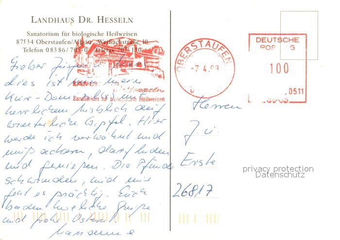 73721150 Oberstaufen Oberallgaeu Bayern Fliegeraufnahme Landhaus Dr Hesseln Gaststube Zimmer Hallenbad postalisch gelaufen Erhaltung siehe scans [WerneD78] alte Postkarte Wern Katcode 11110009780132