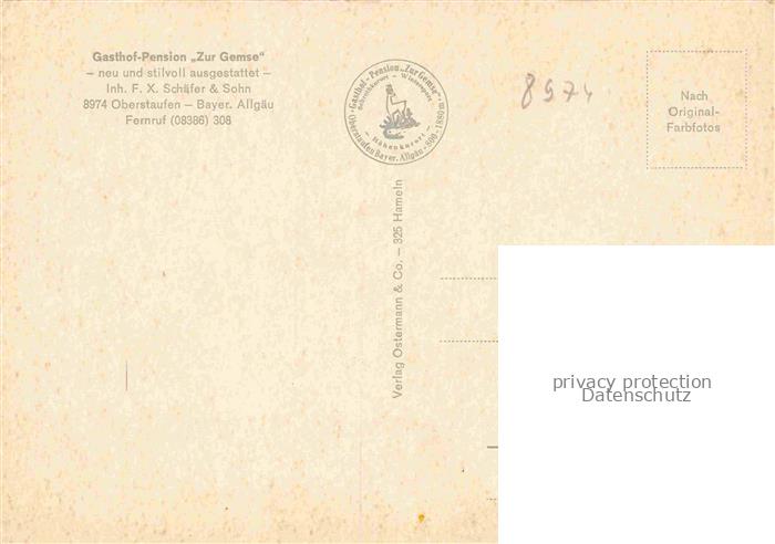 74084725 Oberstaufen Oberallgaeu Bayern Gasthof Pension Zur Gemse Gastraeume postalisch nicht gelaufen Erhaltung siehe scans [WerneD78] KatCode: 11110009780132