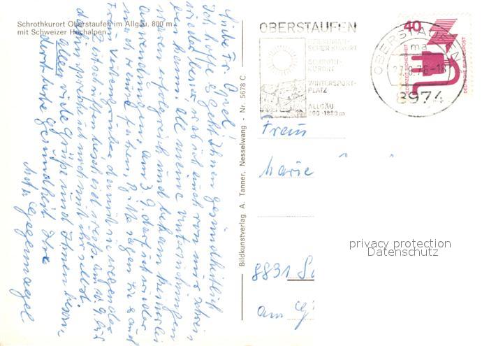 72993702 alte Postkarte Oberstaufen Oberallgaeu Bayern Gesamtansicht postalisch gelaufen Erhaltung siehe scans [AndreD76] KatCode: 11110009780132