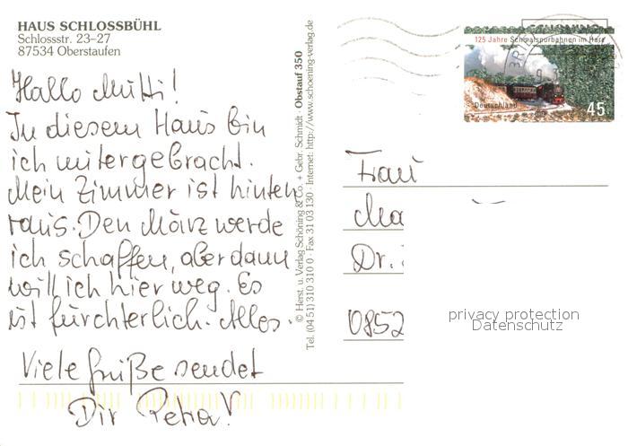 73660374 Oberstaufen Oberallgaeu Bayern Hotel Restaurant Haus Schlossbuehl postalisch gelaufen Erhaltung siehe scans [FriedD77] alte Postkarte Frie Katcode 11110009780132