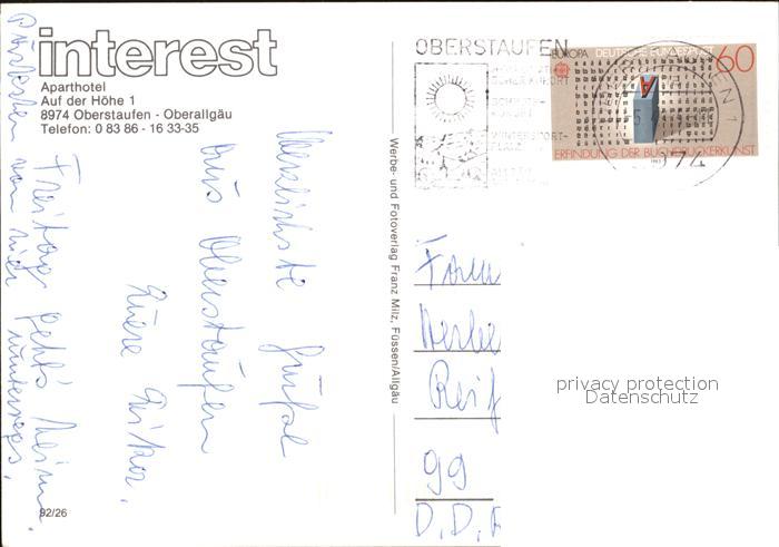 72492313 alte Postkarte Oberstaufen Oberallgaeu Bayern Interest Aparthotel postalisch gelaufen Erhaltung siehe scans KatCode: 11110009780132