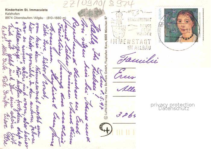 72810724 alte Postkarte Oberstaufen Oberallgaeu Bayern Kinderheim St. Immaculata postalisch gelaufen Erhaltung siehe scans [NatalD47] KatCode: 11110009780132