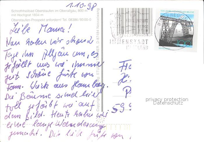 72511620 alte Postkarte Oberstaufen Oberallgaeu Bayern Kirchenpartie mit Hochgrat postalisch gelaufen Erhaltung siehe scans KatCode: 11110009780132