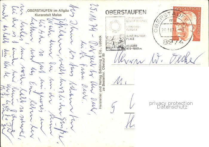 72204386 alte Postkarte Oberstaufen Oberallgaeu Bayern Kuranstalt Malas postalisch gelaufen Erhaltung siehe scans KatCode: 11110009780132