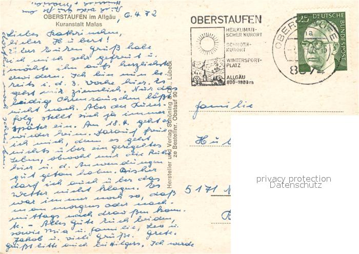 73650679 Oberstaufen Oberallgaeu Bayern Kuranstalt Malas postalisch gelaufen Erhaltung siehe scans [FriedD77] alte Postkarte Frie Katcode 11110009780132