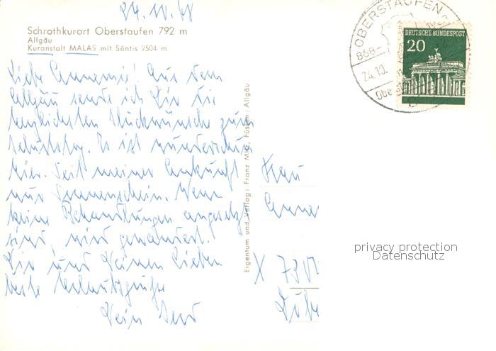 73803479 Oberstaufen Oberallgaeu Bayern Kuranstalt Malas mit Saentis postalisch gelaufen Erhaltung siehe scans [WerneD78] alte Postkarte Wern Katcode 11110009780132
