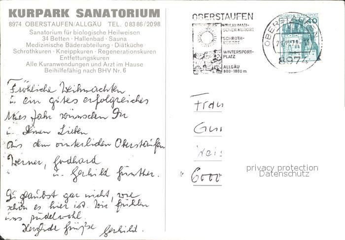 72369590 alte Postkarte Oberstaufen Oberallgaeu Bayern Kurpark Sanatorium postalisch gelaufen Erhaltung siehe scans KatCode: 11110009780132