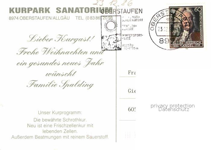 72929002 alte Postkarte Oberstaufen Oberallgaeu Bayern Kurpark Sanatorium Foyer Kaminzimmer Hallenbad postalisch gelaufen Erhaltung siehe scans [FriedD77] KatCode: 11110009780132