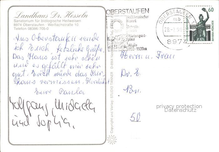 72420885 alte Postkarte Oberstaufen Oberallgaeu Bayern Landhaus Dr Hesseln Garten Terrasse Zimmer Foyer postalisch gelaufen Erhaltung siehe scans KatCode: 11110009780132
