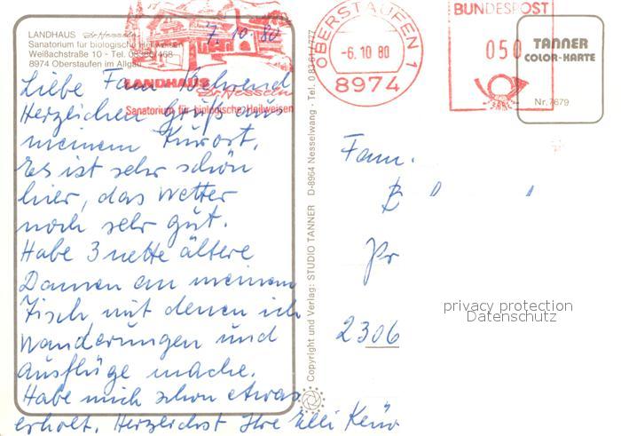 72934107 alte Postkarte Oberstaufen Oberallgaeu Bayern Landhaus Dr. Hesseln postalisch gelaufen Erhaltung siehe scans [LiesaD40] KatCode: 11110009780132