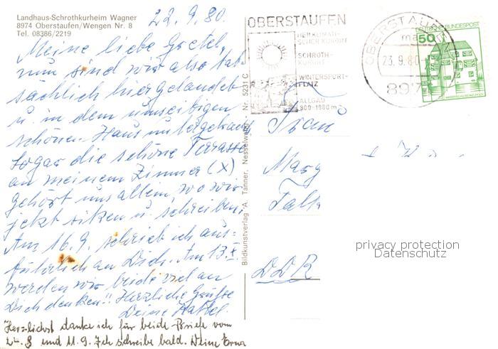 73844616 Oberstaufen Oberallgaeu Bayern Landhaus Schrothkurheim Wagner postalisch gelaufen Erhaltung siehe scans [FriedD77] alte Postkarte Frie Katcode 11110009780132