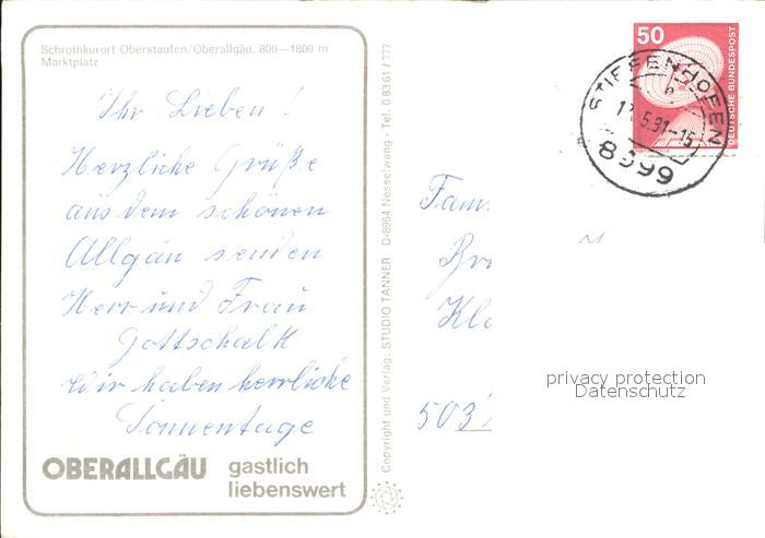 72311355 alte Postkarte Oberstaufen Oberallgaeu Bayern Marktplatz postalisch gelaufen Erhaltung siehe scans KatCode: 11110009780132