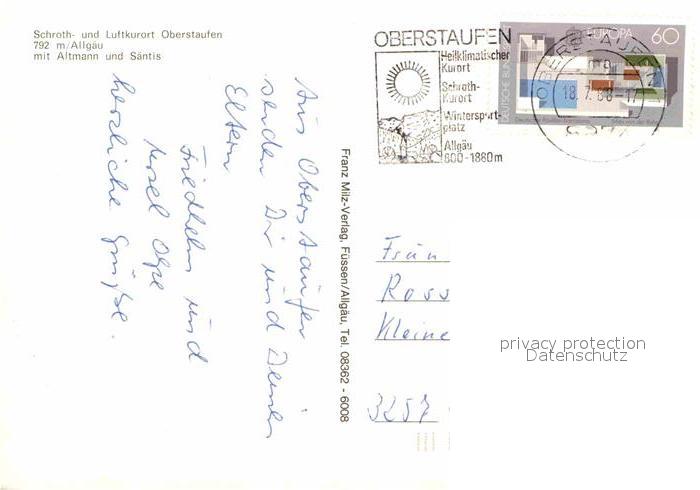 72706211 alte Postkarte Oberstaufen Oberallgaeu Bayern mit Altmann und Saentis postalisch gelaufen Erhaltung siehe scans [WerneD78] KatCode: 11110009780132