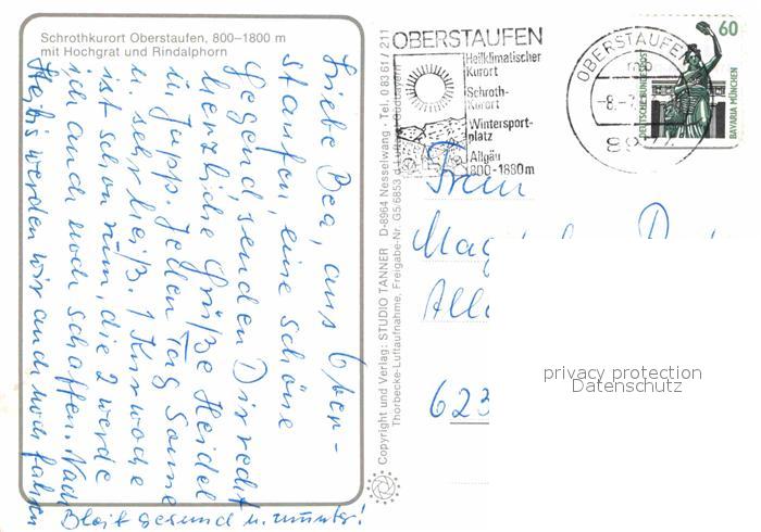 72868760 alte Postkarte Oberstaufen Oberallgaeu Bayern mit Hochgrat und Rindalphorn Allgaeuer Alpen Fliegeraufnahme postalisch gelaufen Erhaltung siehe scans [FriedD77] KatCode: 11110009780132