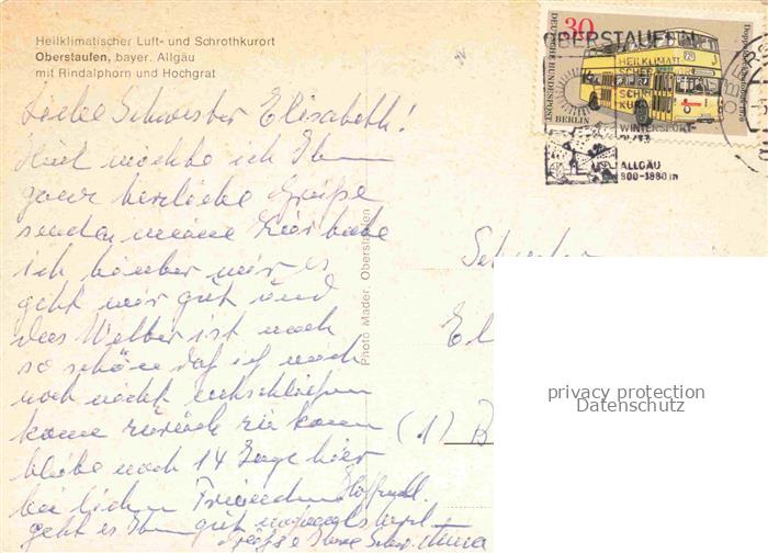 74150715 alte Postkarte Oberstaufen Oberallgaeu Bayern mit Rindalphorn und Hochgrat postalisch gelaufen Erhaltung siehe scans [WerneD78] KatCode: 11110009780132