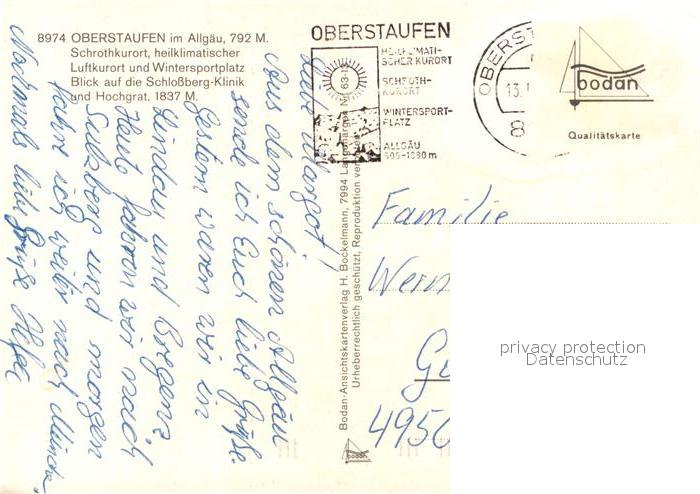 73018927 alte Postkarte Oberstaufen Oberallgaeu Bayern mit Schlossberg Klinik und Hochgrat postalisch gelaufen Erhaltung siehe scans [WerneD78] KatCode: 11110009780132