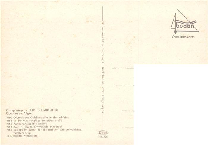 73875857 Oberstaufen Oberallgaeu Bayern Olympiasiegerin Heide Schmid-Biebl Ski-Abfahrt Sportler postalisch nicht gelaufen Erhaltung siehe scans [FriedD77] Frie Katcode 11110009780132