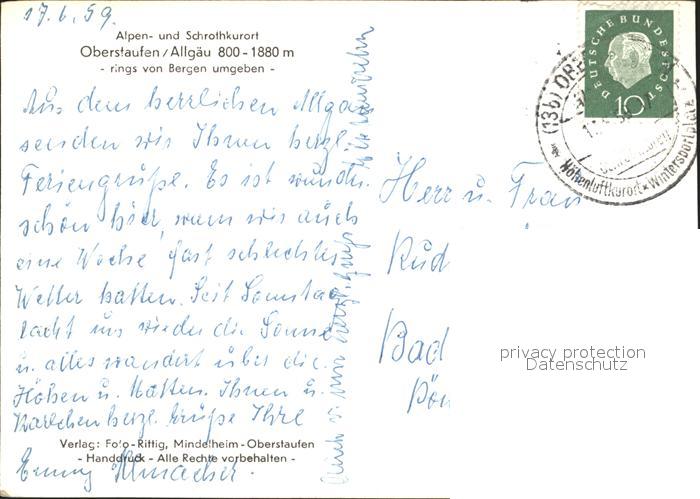 72196177 alte Postkarte Oberstaufen Oberallgaeu Bayern Panorama postalisch gelaufen Erhaltung siehe scans KatCode: 11110009780132