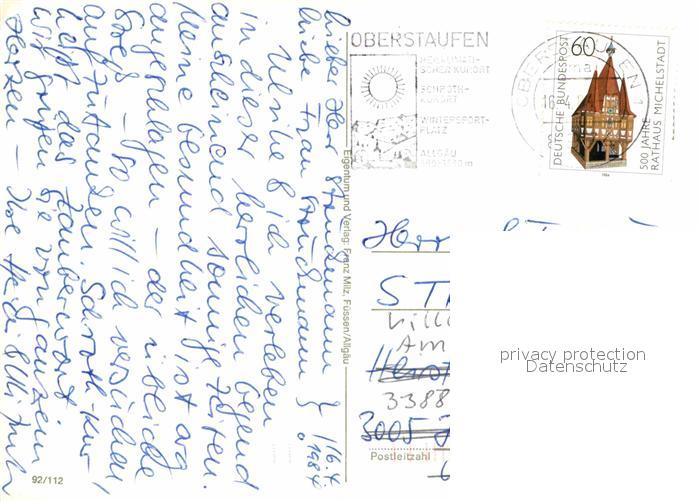 72743112 alte Postkarte Oberstaufen Oberallgaeu Bayern Panorama Allgaeuer Alpen Restaurant Terrasse postalisch gelaufen Erhaltung siehe scans [FriedD77] KatCode: 11110009780132