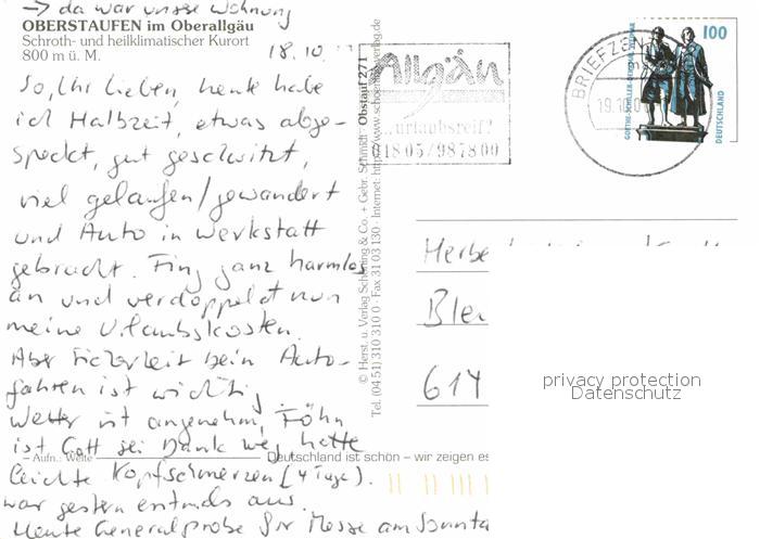72807574 alte Postkarte Oberstaufen Oberallgaeu Bayern Panorama Kurort Allgaeuer Alpen postalisch gelaufen Erhaltung siehe scans [FriedD77] KatCode: 11110009780132
