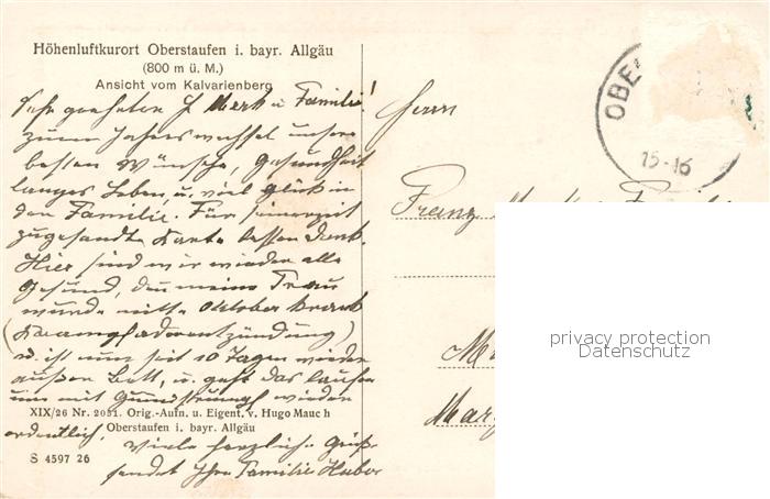 73803977 Oberstaufen Oberallgaeu Bayern Panorama Schlossstrasse Hoehenluftkurort postalisch gelaufen Erhaltung siehe scans [FriedD77] alte Postkarte Frie Katcode 11110009780132