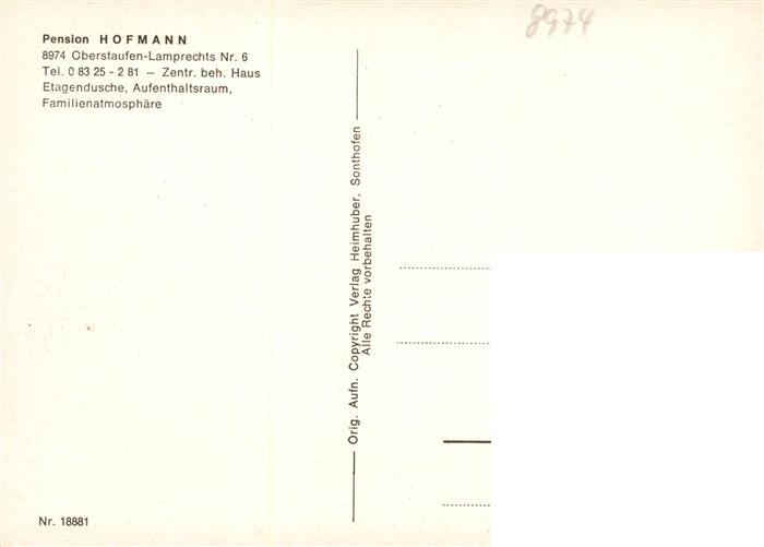 73915418 Oberstaufen Oberallgaeu Bayern Pension Hofmann postalisch nicht gelaufen Erhaltung siehe scans [FriedD77] Frie Katcode 11110009780132
