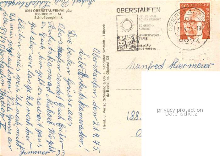 72783304 alte Postkarte Oberstaufen Oberallgaeu Bayern Schlossbergklinik Winterpanorama Allgaeuer Alpen postalisch gelaufen Erhaltung siehe scans [FriedD77] KatCode: 11110009780132