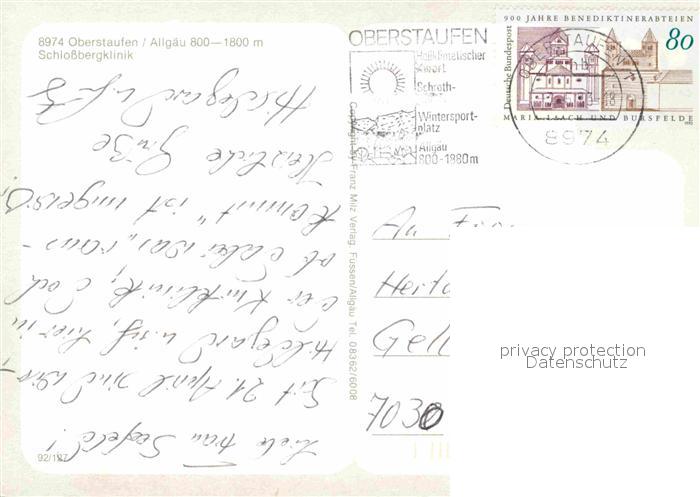 72798719 alte Postkarte Oberstaufen Oberallgaeu Bayern Schlossberklinik Allgaeuer Alpen Fliegeraufnahme postalisch gelaufen Erhaltung siehe scans [FriedD77] KatCode: 11110009780132